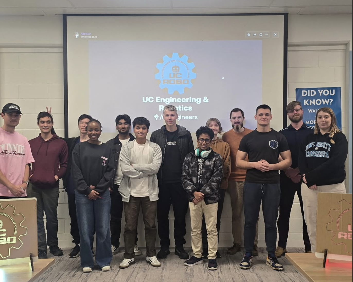 The club’s goals are aimed at creating a community where everyone has the opportunity to feel comfortable sharing knowledge and asking for help. UC ROBO is not just for robotics students, they welcome everyone, whether you are in cybersecurity, tech, humanities or you are just passionate about the field, they are creating an encouraging space where all are invited to learn together. As the UC Batchelor of Engineering Honours - Intelligent Robotics Major course is currently ongoing changes, it now includes classes specifically targeting more specific areas of robotics such as computer vision and machine learning. Having a supportive club can help newer students to feel less stressed.